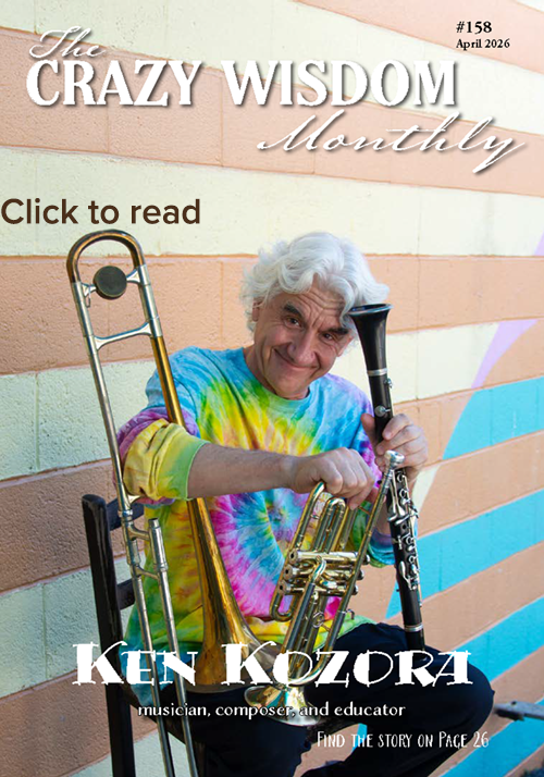 Beat those rainy April days with issue #158 of The Crazy Wisdom Monthly featuring Ken Kozora, local musician, composer, and educator; personal essays by Katherine Munter and Peggy River Singer; Rituals of Care by Dr. Anna C. Gersh, our community spotlight profile, book picks of the month, see what's new in our local calendar of events, and more!