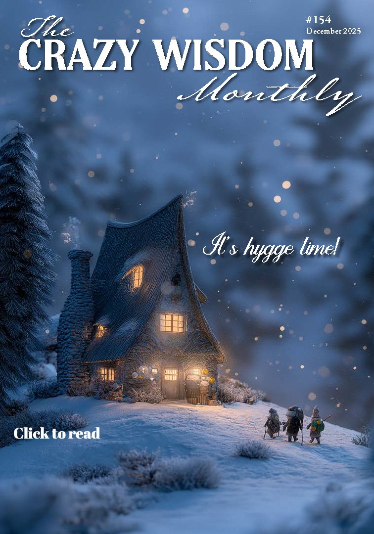 Oh the weather outside is frightful...but in the pages of The Crazy Wisdom Monthly December issue, it's Hygge time! Cozy up with some great original reads like Katherine Munter's essay Heart Forward and visit with The Fae of Oakwood Park by Peggy River Singer. Make posture your new year's resolution, bake a Chai Tea Cake perfect for a holiday brunch, get inspired with our winter boredom busters, check out our book picks of the month ,find community events in our December calendar for when you brave the weather, and more!