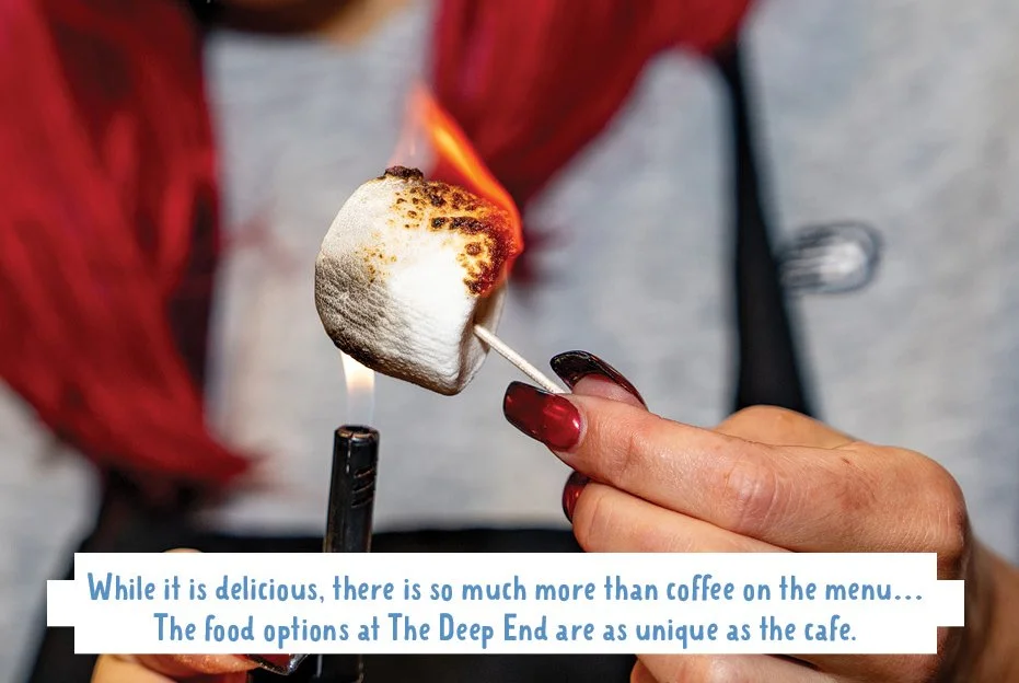 The mission of The Deep End is (per its website) is “to provide a space for underrepresented artists and writers to sell and promote their works while enjoying ethically sourced coffee.” The walls of The Deep End showcase local artists, and most weekends have at least one special event such as music, live readings, karaoke, artist meet and greets, and more.