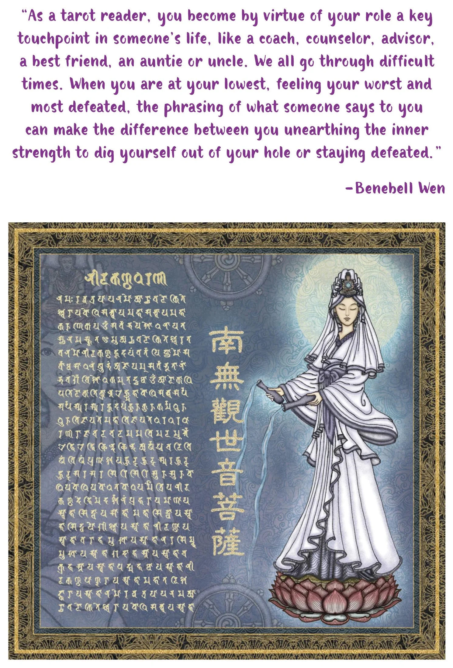 Benebell Wen: Words hold so much power. Phrasing is determinative. Cases are won or lost, lives changed, and fates decided based on how something is said. In contract drafting, two ways of saying the same thing (you think) can lead to the difference of millions of dollars in cost. Me, personally, I think it is only responsible to approach even casual tarot readings in a mindful way, especially when someone is vulnerable and sincerely looking for guidance. How many times has someone’s casual, thoughtless words gotten seared into your long-term memory and decades later you still remember those words, but when asked, that person can’t even remember they spoke to you?
