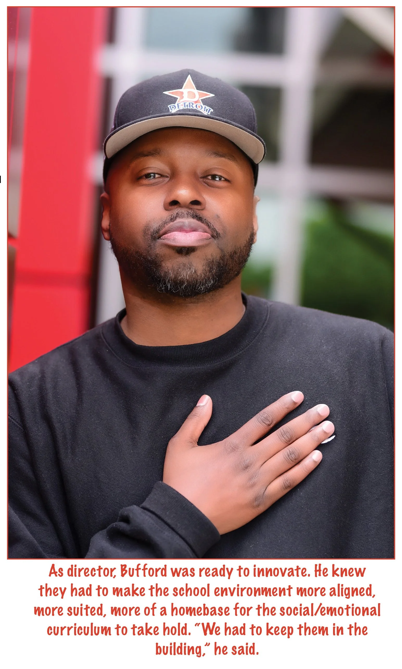 In 2018, a friend invited Bufford to a WMBK summit event at EMU. “They were talking about the state of young Black and brown students in the area. I gravitated toward it.” With his passion and experience Bufford was a great addition to the conversation. Promoted from committee member to director, Bufford was a natural fit. “I finally found full time employment at a wage that allowed me to do the work that I had been focused on for years.” Right away he identified what was working and what needed more attention. “We had to find ways to connect more to the youth in the community, to get inside the schools.” As director, Bufford was ready to innovate. He knew they had to make the school environment more aligned, more suited, more of a homebase for the social/emotional curriculum to take hold. “We had to keep them in the building,” he said.